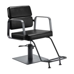A teljes forgómechanizmus növeli a mozgékonyságot és a szabadságot, így a fodrász munkája gördülékenyebb, hatékonyabb és kevésbé megerőltető lesz. A habbal töltött ülőrész kiváló kényelmet biztosít még hosszú órákon át tartó kezelések során is. Az ergonomikus kartámaszok támogatják a vendég helyes testtartását, megadva a pontos vágáshoz és formázáshoz szükséges kényelmet és stabilitást. Praktikus megoldás a háttámla és az ülés közötti nyitott rész, amely megkönnyíti a szék tisztán tartását, mivel lehetővé teszi a haj gyors eltávolítását a nehezen elérhető helyekről. Ez gyorssá és higiénikussá teszi a széket a következő vendég számára való előkészítéshez.